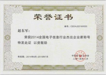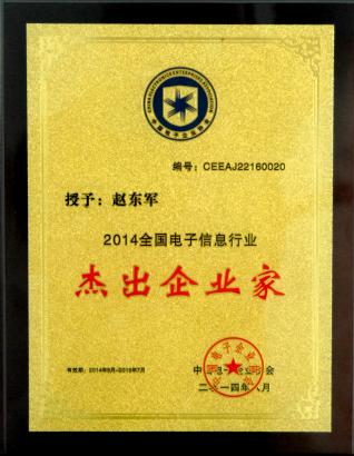 公司总经理赵东军先生获“2014年全国电子信息行业杰出企业家”殊荣