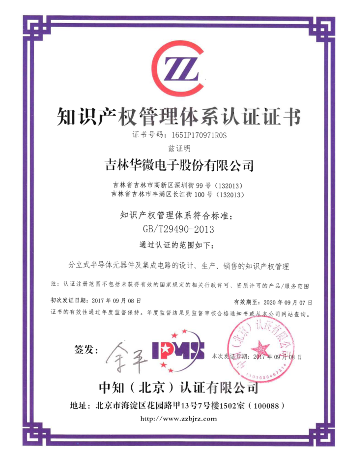知识产权管理体系认证证书
